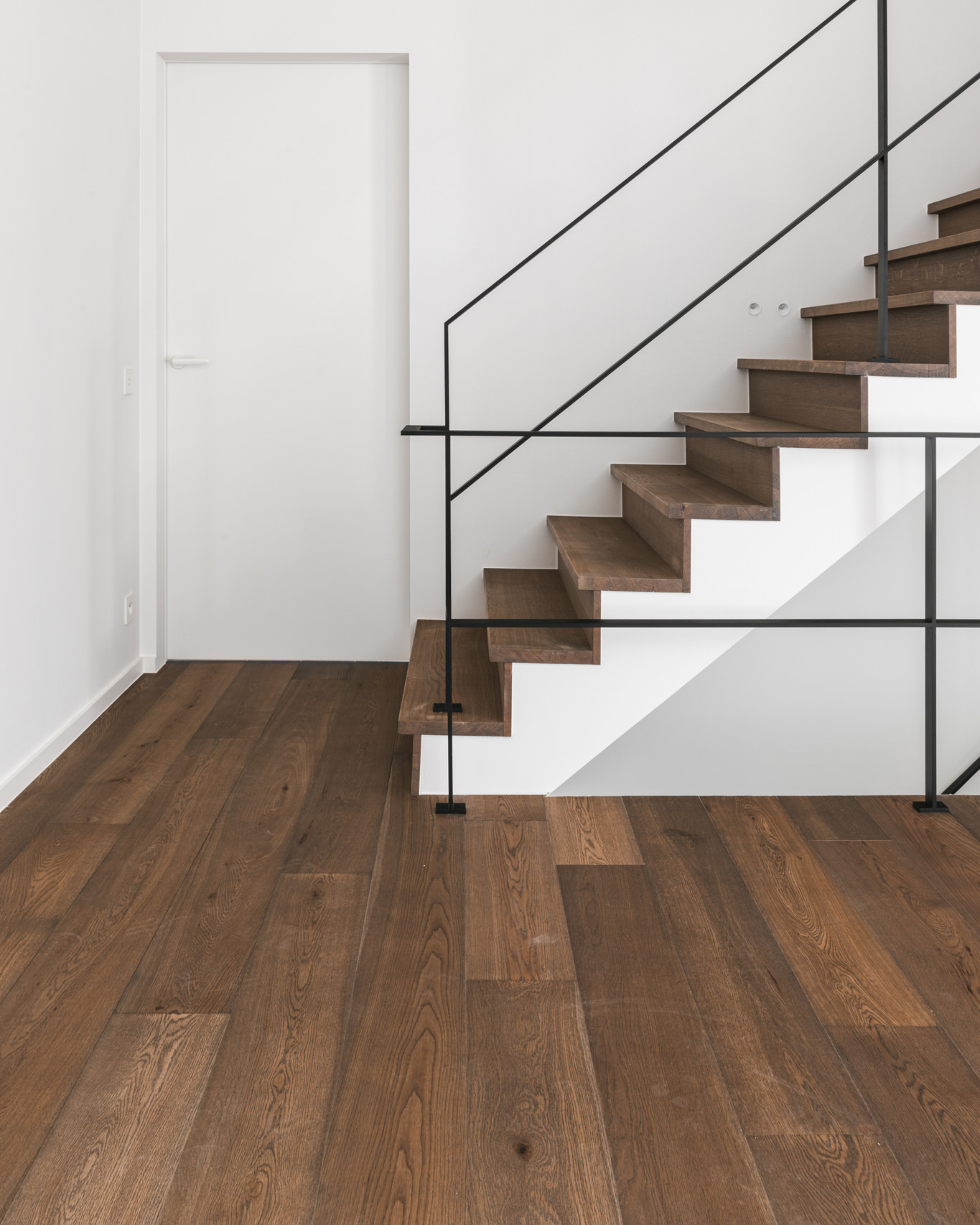 Bij Belgiqa denken we in functie van het interieur. Daarom stemmen we parket, fineer en trappen perfect op elkaar af. Onze trapbekleding is beschikbaar in dezelfde houtsoorten en kleuren als ons parket en fineer, zodat de trap geen los element wordt, maar een natuurlijk verlengstuk van het interieur. Het resultaat? Eén doorlopende vormentaal, één kleurenpalet en een harmonieus geheel, van vloer tot wand en trap.
